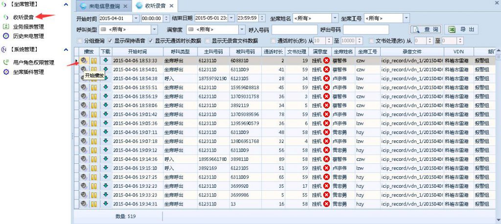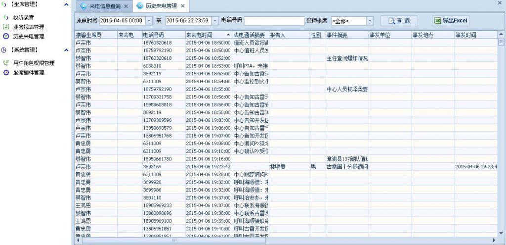 ????? 應(yīng)急值守通過借助現(xiàn)代通信和信息系統(tǒng),并結(jié)合GIS地圖展示及時掌握現(xiàn)場視頻監(jiān)控動態(tài),匯總監(jiān)測預(yù)警信息,并通過系統(tǒng)自動報警警示值守人員。確保在第一時間內(nèi)獲取事故信息,為組織事故應(yīng)急救援贏得時間。接警座席能夠?qū)崿F(xiàn)報警來電分配、電話錄音管理、座席的呼叫、轉(zhuǎn)接、攔截、監(jiān)聽、強插、強拆、回撥、座席信息共享及座席狀態(tài)管理功能。