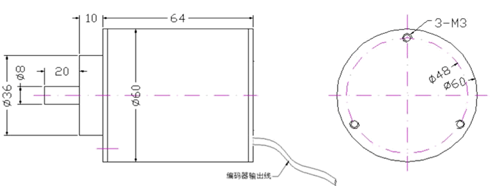 - 外型尺寸:主體直徑60,長64,詳見圖1;