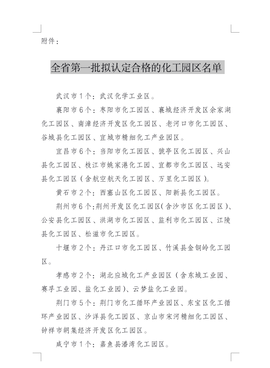 近日,湖北省經(jīng)濟(jì)和信息化廳發(fā)布關(guān)于全省第一批化工園區(qū)復(fù)核認(rèn)定結(jié)果的公示,確定了全省第一批擬認(rèn)定合格的化工園區(qū)名單,包括40家園區(qū),公示期為2023年4月13日-26日。