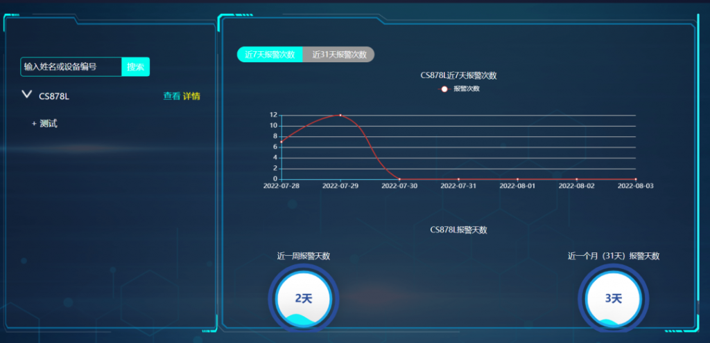 3.跌落報警:人員跌落或受到猛烈撞擊系統(tǒng)會提示收到報警。