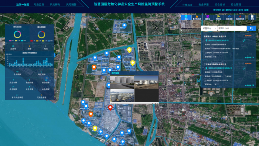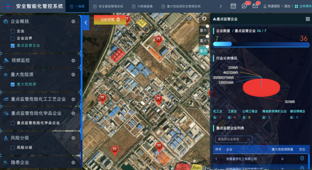 ? ? 通過一張圖可視化界面直觀展現(xiàn)預(yù)警信息,通過紅、橙、黃、藍(lán)四色展示企業(yè)預(yù)警情況,可在GIS地圖中展示預(yù)警的位置,同時(shí)預(yù)警圖標(biāo)閃爍,點(diǎn)擊預(yù)警可查看預(yù)警詳細(xì)信息,并自動(dòng)與視頻進(jìn)行聯(lián)動(dòng),方便值班人員對(duì)預(yù)警信息進(jìn)行核實(shí)。