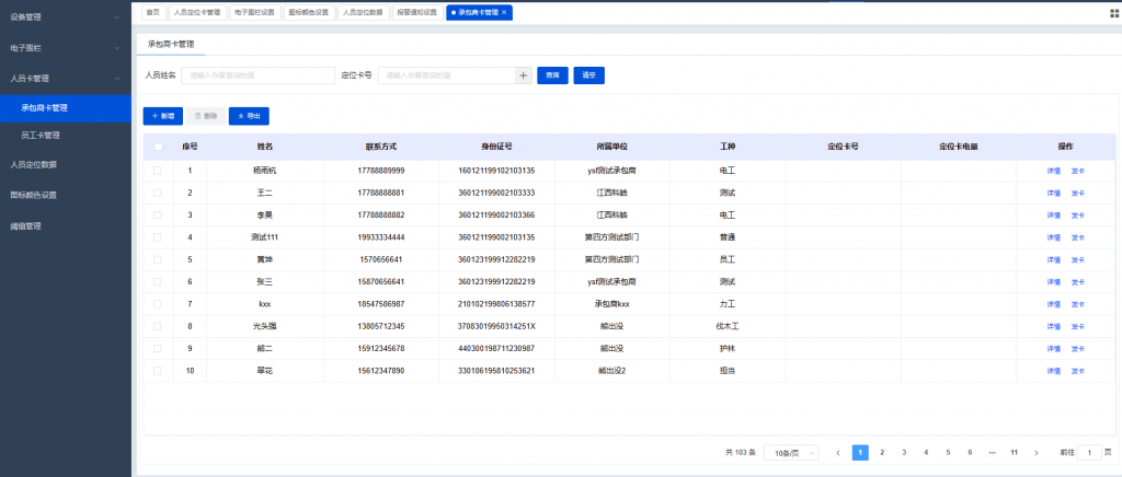 系統(tǒng)對企業(yè)門禁與人員身份識別卡片進(jìn)行統(tǒng)一管理,涵蓋門禁卡、定位卡、工牌的發(fā)放、掛失與注銷等全過程。支持與門禁、定位等設(shè)備的集成聯(lián)動(dòng),實(shí)現(xiàn)人員進(jìn)出、區(qū)域管控與身份識別的高效管理。