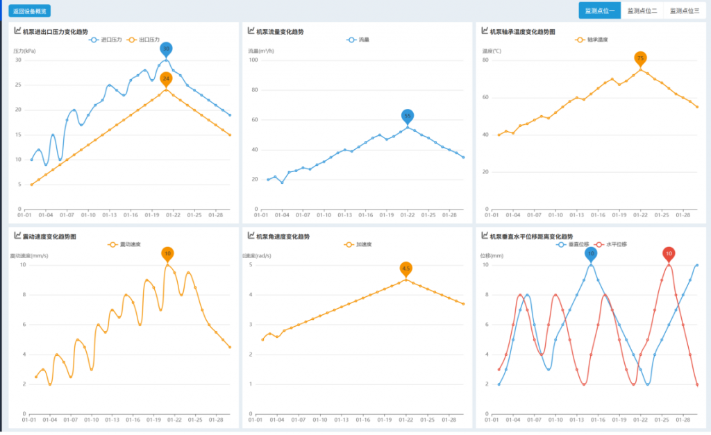 - 支持機(jī)泵運(yùn)行狀態(tài)監(jiān)控、異常報(bào)警管理功能;